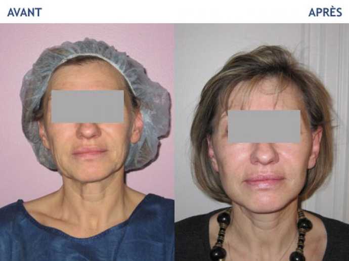 Photos avant et après de liftings du visage combinant des techniques de chirurgie esthétique (lifting, lipostructrure) et de médecine esthétique (injection de botox ou d’acide hyaluronique), ce qui permet généralement d’obtenir un résultat plus durable et plus naturel.